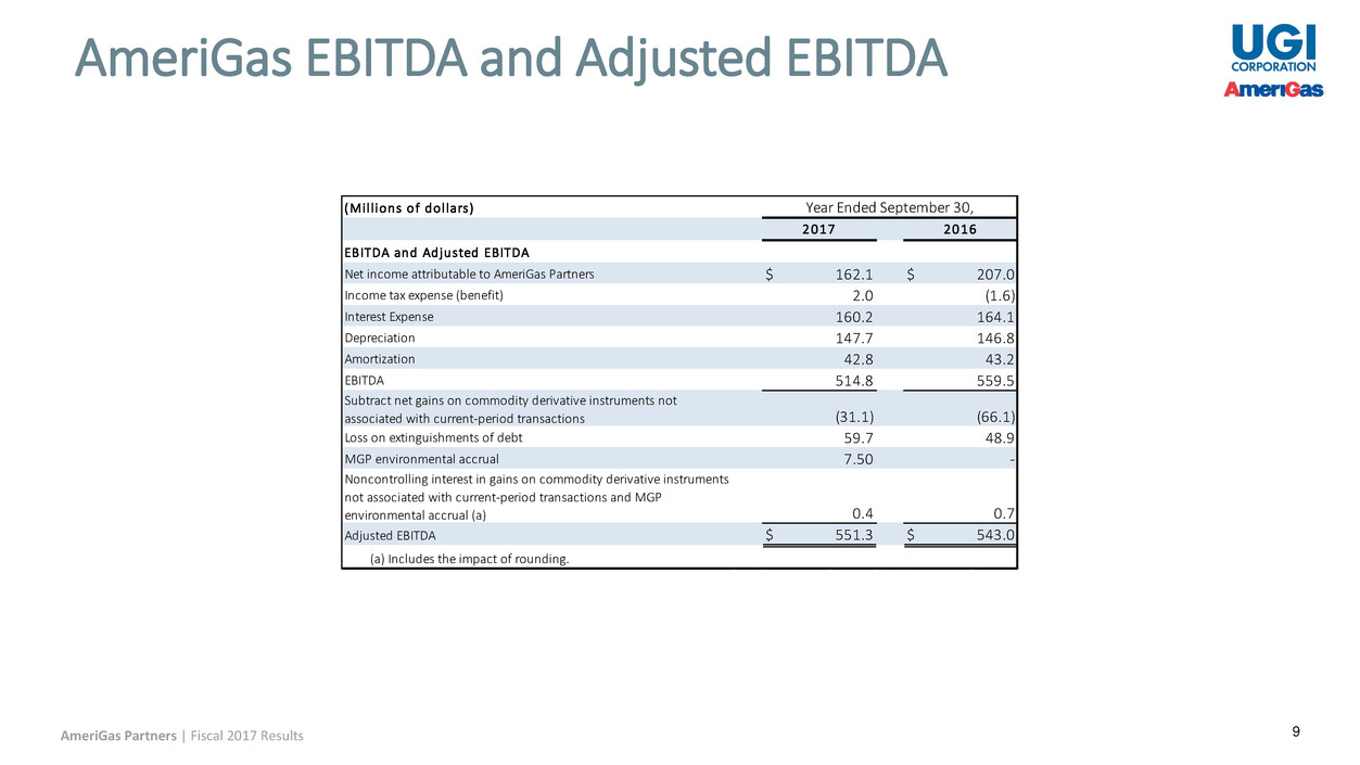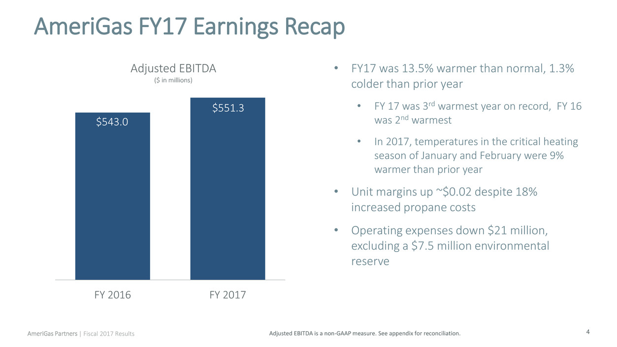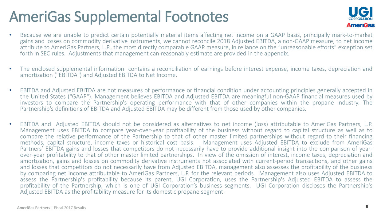 VALLEY FORGE, PA - AmeriGas Propane, Inc., general partner of AmeriGas Partners, L.P. ("the Partnership," NYSE: APU), today reported financial results for the fiscal year ended September 30, 2017.