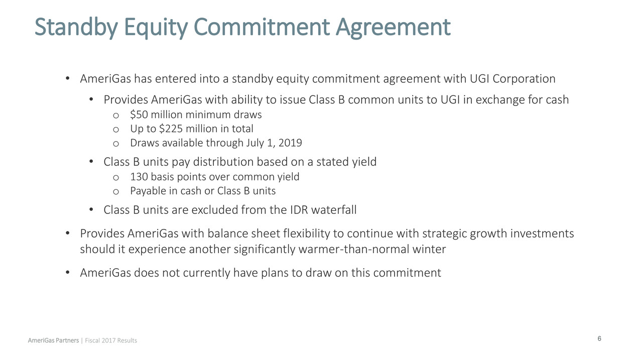 • AmeriGas has entered into a standby equity commitment agreement with UGI Corporation